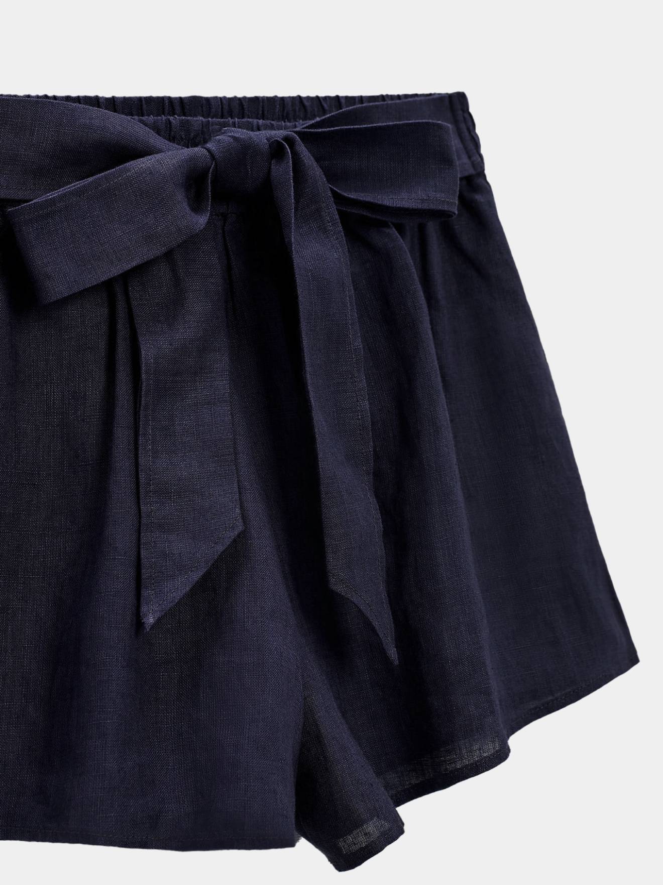 Dark Blue Breezy Linen Tie Bermuda Shorts