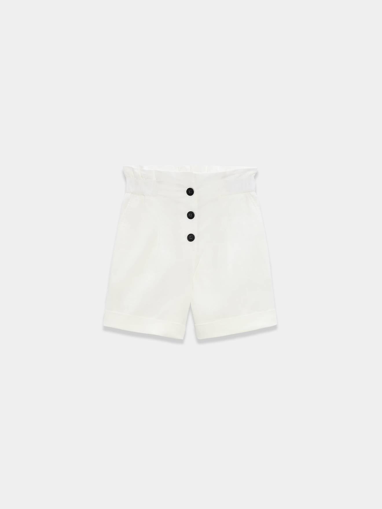 White Paperbag Shorts with buttons